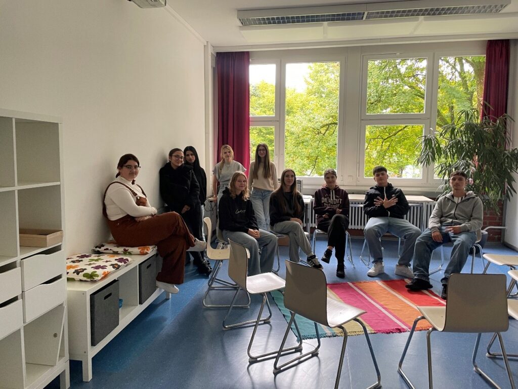 Schülerinnen und Schüler gestalten den neuen STARK Raum der Schule. Es entsteht eine neue Umgebung für Gespräche zur Stärkung der eigenen Persönlichkeit.